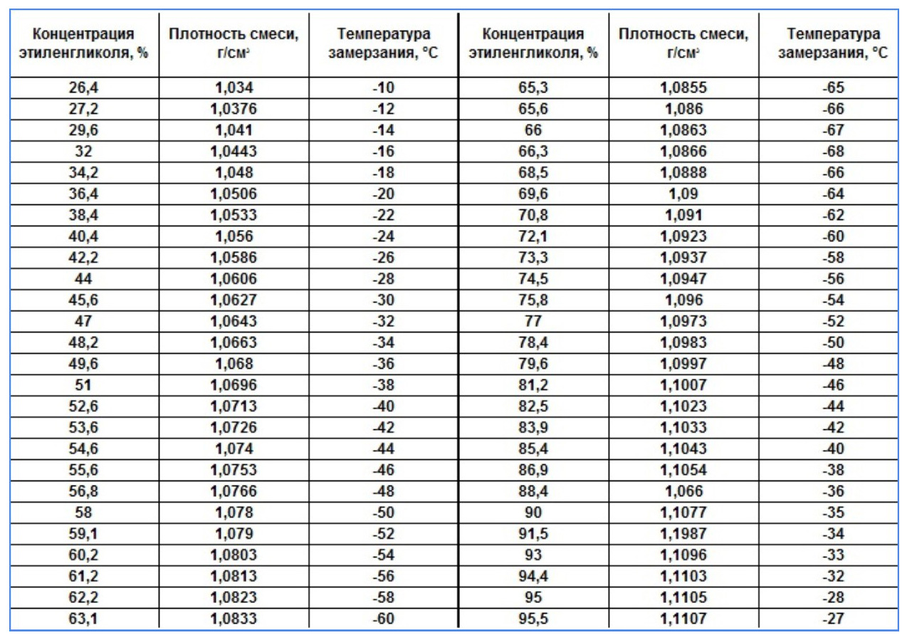 - Температура замерзания жидкости должна находиться в диапазоне от -20 до -70 градусов. Не превышайте эти значения!