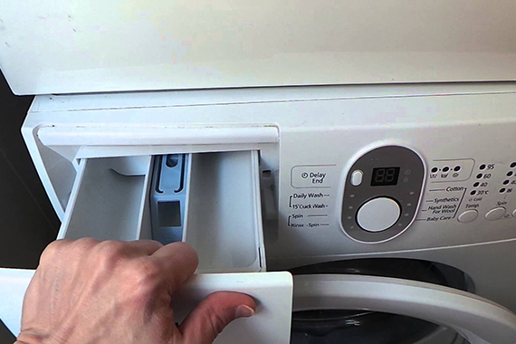 - Если это произошло из-за избыточного количества стирального порошка, запустите режим полоскания. После его завершения можно снова выбрать режим стирки.