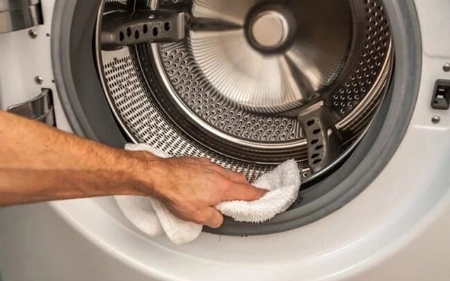 - Протрите уплотнительную манжету и внутреннюю поверхность барабана раствором, состоящим из двух столовых ложек уксуса и одного литра воды;