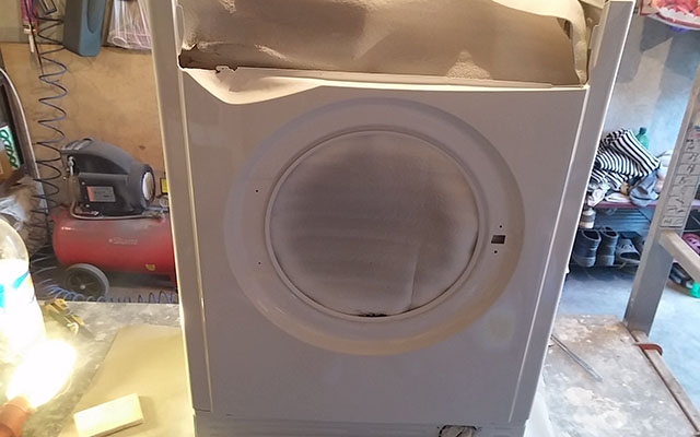 Сначала необходимо тщательно очистить проблемные участки стиральной машинки, затем удалить ржавчину с помощью зачистного круга и использовать преобразователь ржавчины. Обработайте шлифовальной машинкой все места, где была ржавчина, с зерном 120. Затем отшлифуйте всю деталь с зерном 220-320, чтобы избежать появления заметных пятен после покраски.