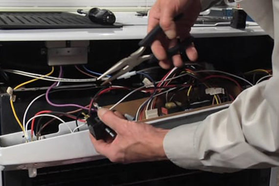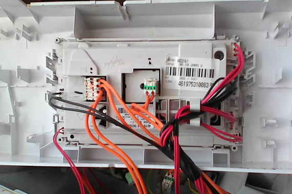 - Осмотрите электронный замок люка на предмет повреждений проводки и качества подключения клемм. Если вы заметите какие-либо неисправности, устраните их.
