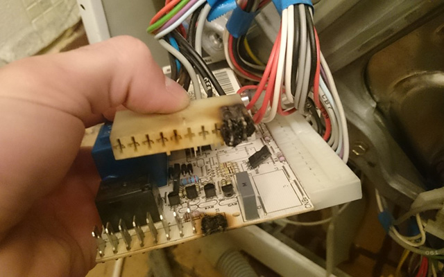 - Реле, отвечающее за регулировку нагрева воды, может быть заедает (на электронном блоке). В этом случае потребуется его замена.