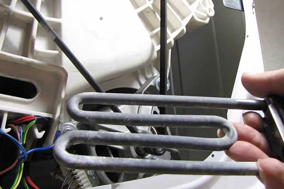 ТЭН может находиться под баком или в центре, а иногда немного сбоку, если загрузка вертикальная. Чтобы его осмотреть, нужно слегка покачать барабан и осветить его фонарем через отверстия.