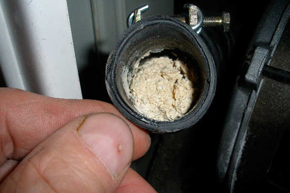 - Патрубок от отсека для порошка к баку снимается и очищается.