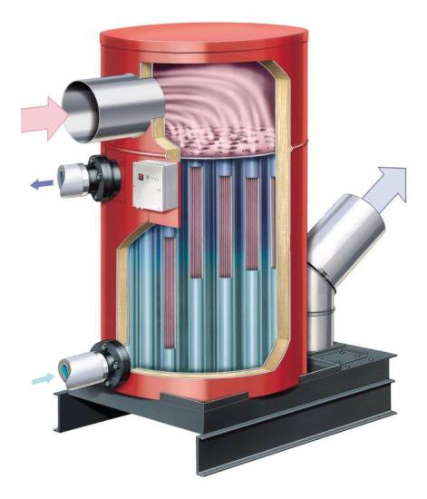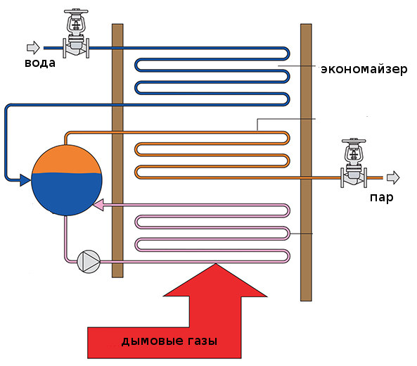 Таким образом, происходит снижение затрат на топливо. Экономайзер нагревает воду не за счет топлива, а благодаря отработанным газам.