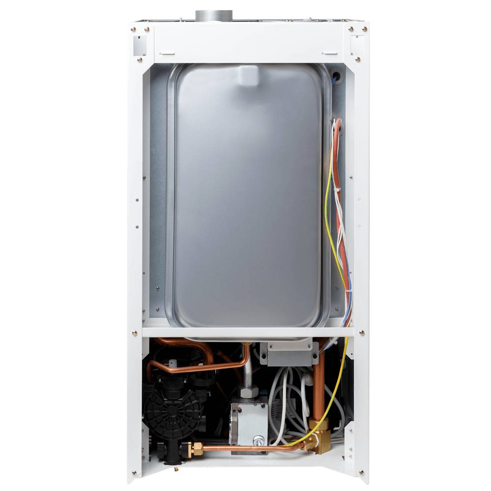 Настенный газовый мини-котел. Габариты устройства составляют 655×350×320 мм, а его вес – 27,3 кг. Данная двухконтурная система оснащена закрытой камерой сгорания. Мощность котла достигает 18 кВт, что делает его идеальным для обогрева помещений площадью до 150 м².