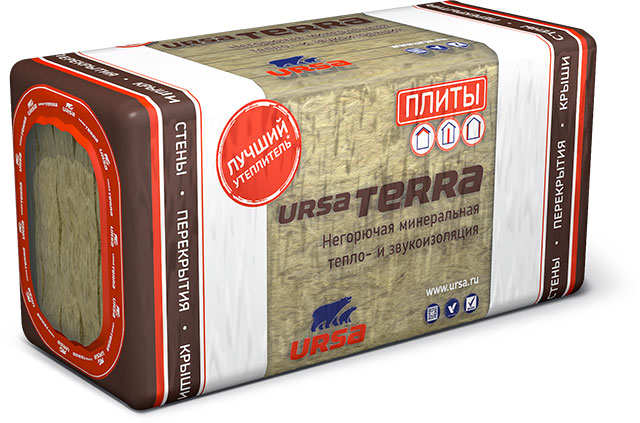 Плиты из минеральной ваты Урса выдерживают температуру -60°С +120°С. Технические характеристики: теплопроводность λ10 = 0,040 Вт/мК.