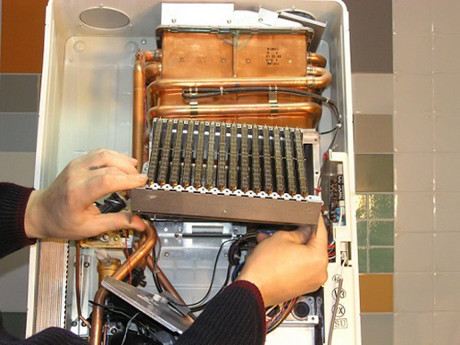 Чтобы очистить внутреннюю часть, также снимите теплообменник, поставьте на небольшой огонь емкость с водой, погрузите его туда и добавьте очистительный кислотный раствор. Оставьте на огне на час, затем промойте под проточной водой и установите обратно.