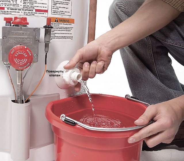 | Закройте сливной кран. | После того как вода перестанет течь, закройте кран. | |