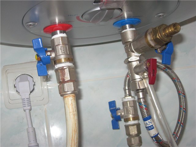 | Перекройте подачу холодной воды в водонагреватель. | Найдите вентиль на трубе подачи холодной воды (обычно синий или с синей меткой) и поверните его до упора. | |
