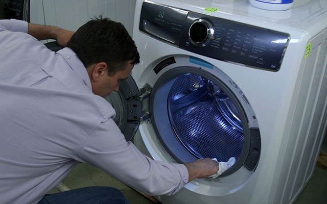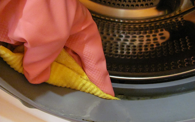 - После завершения стирки откройте машину и проверьте, остались ли куски накипи в барабане. Если они есть, удалите их с помощью тряпки.
