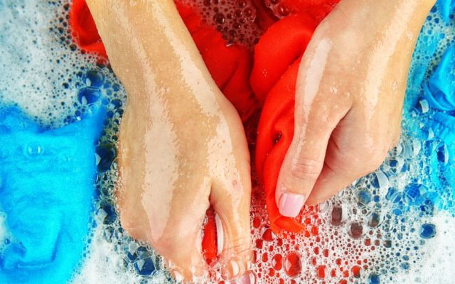 - Тщательно выполаскивайте одежду, так как остатки моющих средств могут вызвать пожелтение, особенно при сушке на солнце.