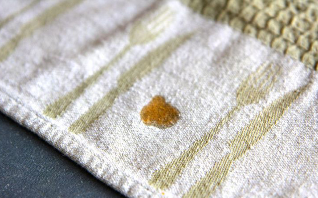 - Возьмите два белых хлопковых полотенца или используйте плотные салфетки. Поместите их с обеих сторон пятна.