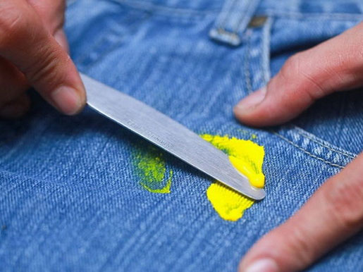 Давайте рассмотрим самые эффективные способы, как избавиться от пластилина на одежде. Первый шаг — это удалить сам материал. Если он достаточно упругий, аккуратно соскребите его тупым краем ножа.