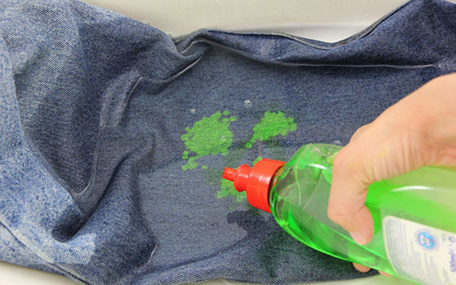 Затем на масляный след нанесите средство для мытья посуды и оставьте на несколько часов. После этого постирайте в стиральной машине на максимально допустимой температуре для данного типа ткани.