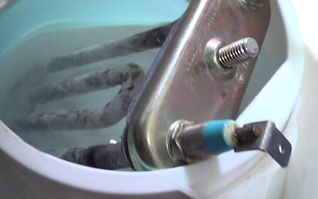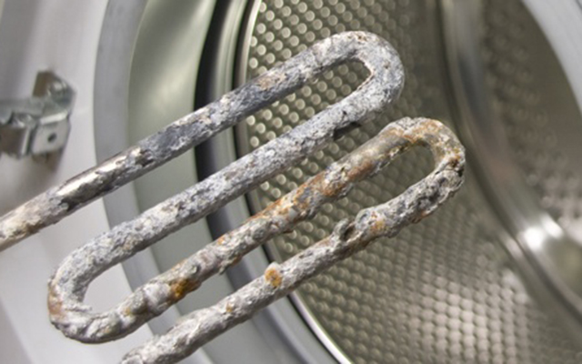 Накипь на нагревательном элементе образуется из-за жесткой воды, содержащей растворенные минеральные соли. Когда уровень магния и биокарбоната кальция в воде превышает норму, образуется осадок, который оседает на ТЭНе и других компонентах стиральной машины, что может привести к поломкам и утечкам.