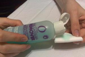 - В первую очередь, стоит попробовать средство для удаления лака, не содержащее ацетон. Не забудьте провести тест на небольшом, незаметном участке ткани. Если результат будет положительным, можно перейти к удалению основного пятна. Для этого возьмите кусочек ненужной белой ткани, смочите его в растворе и приложите к пятну на 10-15 минут. Чтобы процесс размягчения был более эффективным, поместите одежду в целлофановый пакет. По истечении времени аккуратно начните тереть пятно. Для усиления эффекта можно использовать щетку с мягким ворсом, периодически смачивая ее в растворе. Как только пятно исчезнет, тщательно прополощите вещь и отправьте ее в стиральную машину. Установите максимальную разрешенную производителем температуру и включите дополнительное полоскание. Чтобы избавиться от неприятного запаха, добавьте немного кондиционера для белья. Сушите одежду в хорошо проветриваемом помещении.