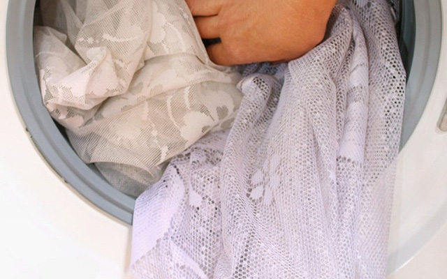 В стиральной машине можно очищать тканевые шторы и изделия из полиэстера. Если шторы сильно загрязнены, с пятнами плесени или желтизны, перед стиркой обработайте проблемные участки пастой из соды и воды. Обратите особое внимание на нижнюю часть и швы, так как именно там чаще всего скапливается плесень. Для этого используйте щетку с мягкой щетиной.