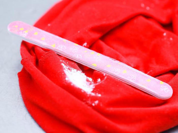 Если на одежду попал спиртовой корректор, не стоит сразу пытаться удалить пятно. Напротив, дайте ему полностью высохнуть. После этого аккуратно снимите образовавшуюся корочку с помощью острого предмета, например, канцелярского ножа или обычной пилки для ногтей.