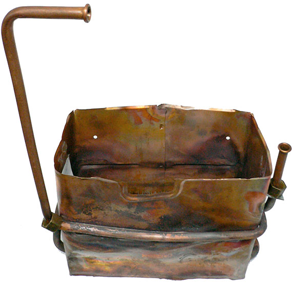 Радиатор теплообменника представляет собой конструкцию из труб и металлических пластин, расположенных близко друг к другу. Пластины находятся в непосредственном контакте с огнем, что приводит к накоплению сажи со временем.