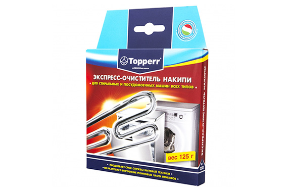 - Topperr 3004 – препарат для борьбы с накипью, произведенный в Германии, который рекомендуется многими производителями стиральных машин. Он успешно справляется со сложными загрязнениями;