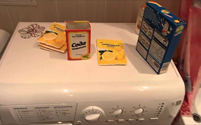 Второй метод. В зависимости от степени загрязнения и размера стиральной машины, в контейнер для порошка засыпается от одной до шести пачек лимонной кислоты. Затем запустите машину на «холостом» ходу на максимальное время и при самой высокой температуре.