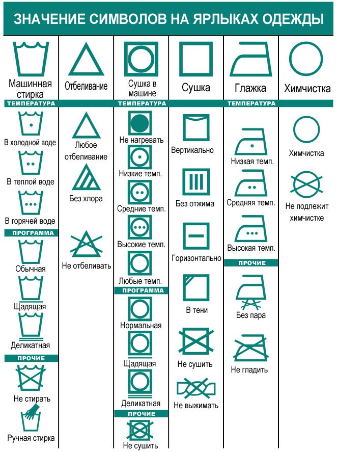 Ознакомьтесь с ярлыком, пришитым к одежде. На нем производитель указывает важную информацию о составе материала, способах стирки, рекомендуемой температуре, а также о том, можно ли использовать утюг или предпочтительнее паровая обработка.