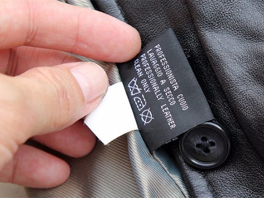 На ярлыке указаны состав материала, рекомендации по стирке, включая допустимую температуру, а также информацию о том, можно ли стирать изделие вручную или в машине. Также там содержится информация о возможности химической чистки и о запрещенных химических веществах.