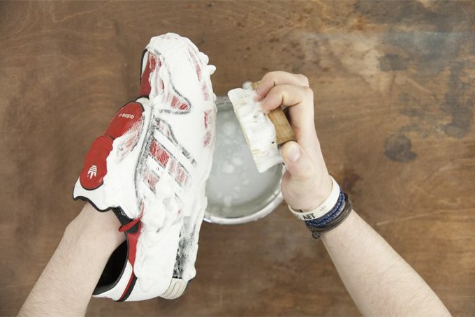 - Внимательно ознакомьтесь с ярлыком. Обычно натуральные материалы, такие как замша или кожа, не рекомендуется стирать. Однако некоторые модели спортивной обуви могут выдержать эту процедуру.