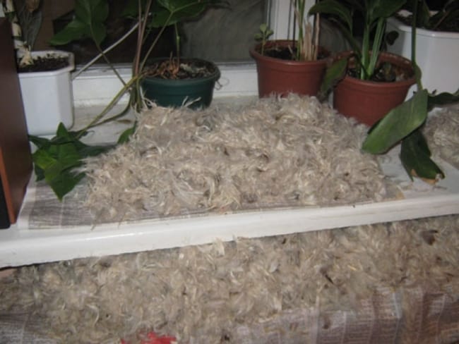 Если нет возможности высушить наполнитель на улице, его можно разместить на батарее, но в этом случае важно взбивать его каждые два-три часа.