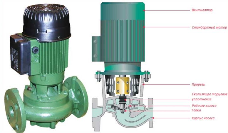 Насосы с сухим ротором обладают высоким коэффициентом полезного действия и мощностью. Они в основном применяются для отопления крупных объектов. Однако у этих устройств есть и недостатки: сложность монтажа, необходимость частого технического обслуживания и повышенный уровень шума, так как охлаждение электропривода осуществляется воздухом.