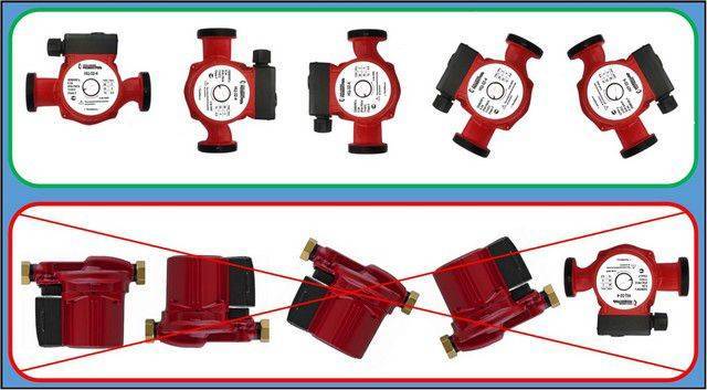 Третья ошибка. Установка насоса с ротором вверх, тогда как он должен находиться в горизонтальном положении.