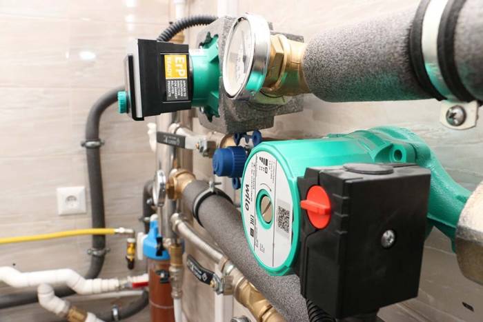 - Первым делом необходимо определить количество насосов, которые будут установлены в системе. В простых системах обычно используется один насос, в то время как для более сложных конфигураций, включая теплые полы, потребуется два и более насосов. Если в отоплении задействованы два котла, то каждый из них должен обслуживаться отдельным насосом.