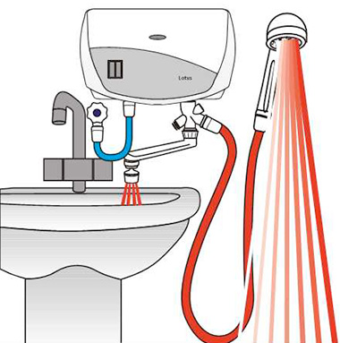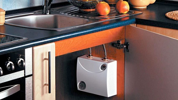 На рынке также представлены модели нагревателей, которые устанавливаются непосредственно на кран. Они имеют довольно низкую пропускную способность — около трех литров в минуту, мощность составляет 3 кВт, и работают от сети 220 V. Такие устройства удобно монтировать на кухне или в ванной для мытья рук.