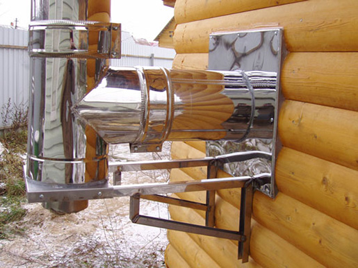 Выводить дымоход через стену лучше всего со стороны фронтона или кровельного ската. Чтобы в дымоходе была хорошая тяга, при сборе конструкции не делайте слишком много изгибов. Прохождение образующихся при сгорании топлива газов должно быть беспрепятственным. Дымовая труба в процессе монтажа может только расширяться.