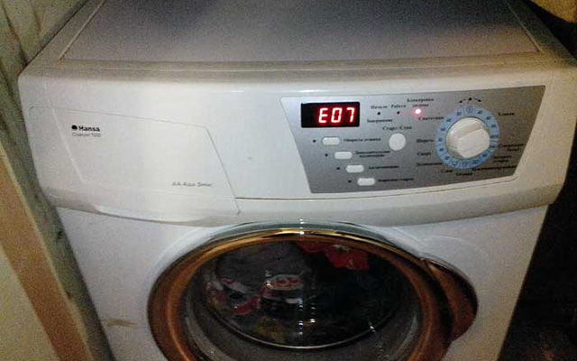 | E07 | Проблема с датчиком уровня воды | Отключите стиральную машину от сети. Возможно, неисправен датчик уровня воды. |