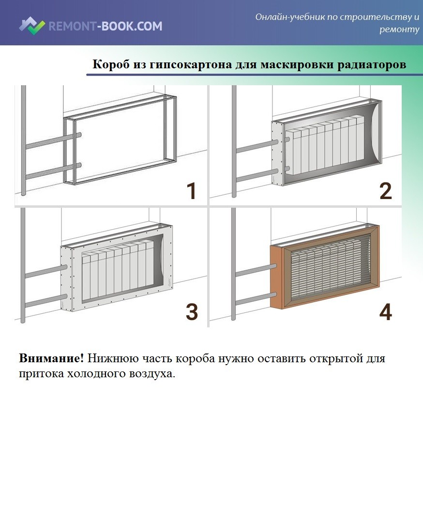 Обязательно оставьте вентиляционные отверстия в коробе для обеспечения нормальной циркуляции воздуха. Это поможет избежать перегрева батареи и повысит эффективность отопления.