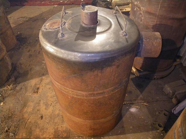 Использовать такой самодельный котел довольно просто. На дно засыпается топливо и поджигается. После того как огонь разгорится, устанавливаем поршень и закрываем крышку. По мере горения поршень будет постепенно опускаться.