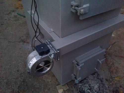 - В топке делаем отверстие и ввариваем патрубок, через который будет поступать кислород.