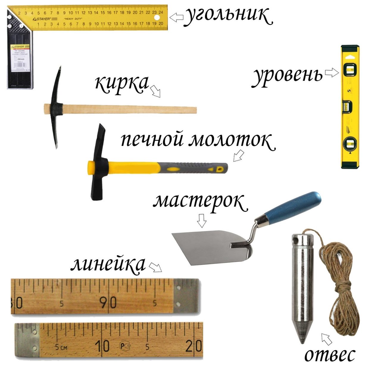 Чтобы выполнить кладку печи самостоятельно, необходимо подготовить набор инструментов, запастись строительными материалами и фурнитурой.