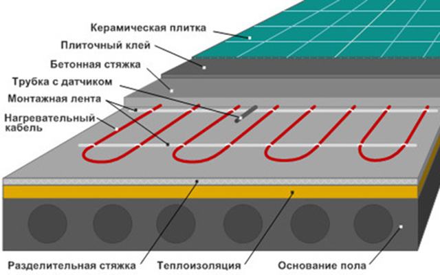 Принцип работы системы теплого пола напрямую определяет его конструкцию. Пол состоит из нескольких технологических слоев, поэтому среди специалистов по укладке часто можно услышать термин «пирог пола».