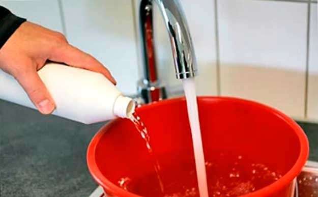 Шаг 1. Разводим в емкости раствор, согласно инструкции (не забываем про средства защиты).