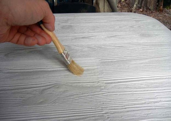 Шаг3. То же необходимо проделать и на деревянной поверхности. Несильными движениями кисточки аккуратно нанести краску на изделие вдоль волокон.