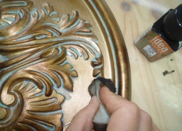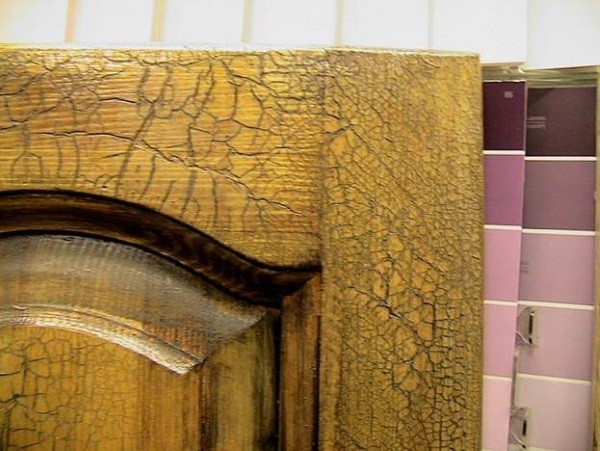 Этот метод часто применяют художники для создания кракелюров – имитации старения, выглядит, как растрескавшийся от времени лакокрасочный слой – в виде паутины. Может использоваться и для состаривания деревянных окрашенных или лакированных изделий. Одна из самых эффектных методик.