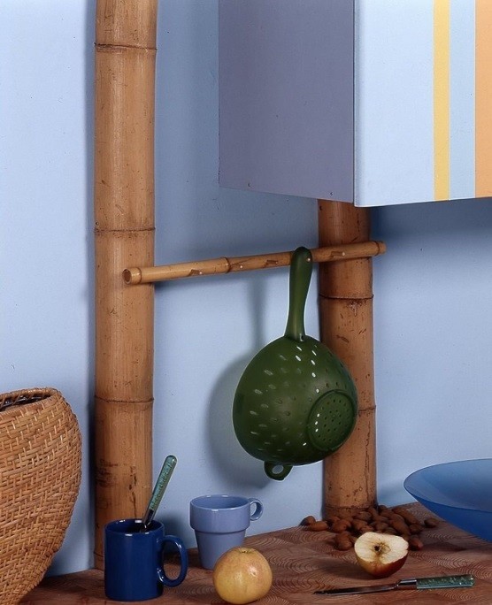 После этого на рейлинг можно повесить с помощью крючков различные миски, половники, миксеры и другие кухонные аксессуары, оставив трубу свободной. Благодаря единой стилистике элементов, композиция будет выглядеть гармонично и привлекательно. Этот прием отлично впишется в современные интерьеры, которые сейчас на пике популярности.