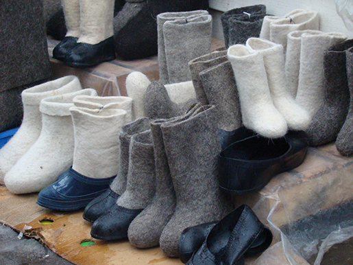 Войлочные валенки. Сначала валенки необходимо хорошо просушить после растаявшего снега и счистить засохшую грязь с помощью щетки с жесткой щетиной. После этого нужно развести стиральный порошок с водой в пропорции 1:2, смочить в растворе щетку и обработать ей все загрязненные участки.