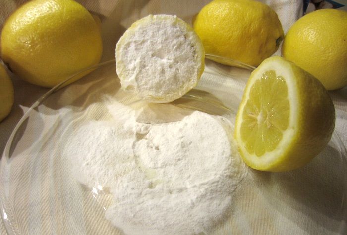 Сначала слегка увлажните область загрязнения, используя обычный пульверизатор, но не переусердствуйте с количеством воды. Затем насыпьте мелкую соду на пятно. После этого сбрызните все лимонным соком и оставьте на 1-1,5 часа. По истечении времени аккуратно стряхните соду с ткани, а затем просто выстирайте вещь.