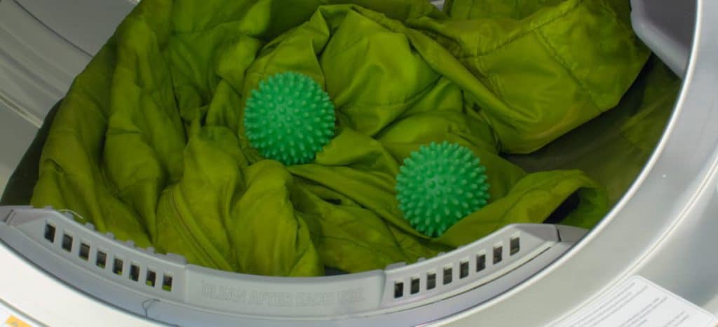 Чтобы восстановить форму пуха или пера, можно использовать стиральную машину в режиме сушки или отжима. Поместите в барабан вашу одежду вместе с несколькими специальными шариками. Если таких шариков нет, подойдут теннисные мячики или прорезиненные игрушки для детей, главное, чтобы они не имели острых краев, способных повредить ткань. Возможно, потребуется запустить несколько циклов, чтобы добиться нужного эффекта.