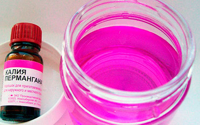 Замачивание в растворе марганцовки также способствует восстановлению белизны. Для этого разведите марганцовокислый калий в горячей воде, чтобы получить раствор светло-розового оттенка. Убедитесь, что все кристаллы полностью растворились, иначе на ткани могут остаться следы марганца.