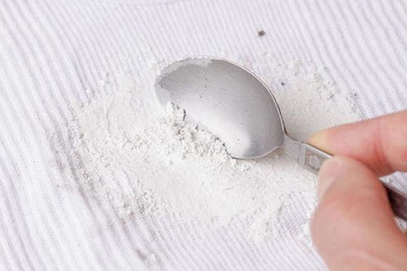 Пищевая сода — еще один эффективный вариант. Возьмите 3 столовые ложки соды и добавьте немного воды, чтобы получить пастообразную консистенцию. Нанесите ее на пораженный участок и оставьте на некоторое время. Затем тщательно протрите губкой и постирайте.